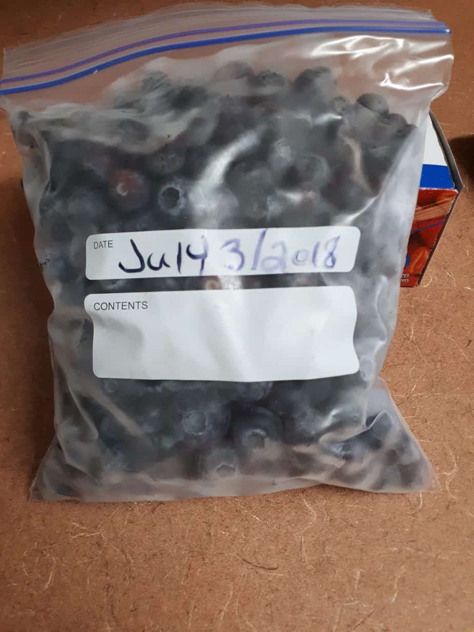 Once your freezer bags are all filled up with your frozen blueberries we are going to seal up our bags. You will want to make sure you have any extra air out and that your seal is closed good. Next we are going to write down the date so that when you get more blueberries to freeze you will keep the oldest dated ones on the top of the pile to use up first in your recipes. Your bags are now ready to be stored in your freezer for use in your favorite recipes calling for blueberries. There you go you know how to freeze fresh blueberries properly! Enjoy!